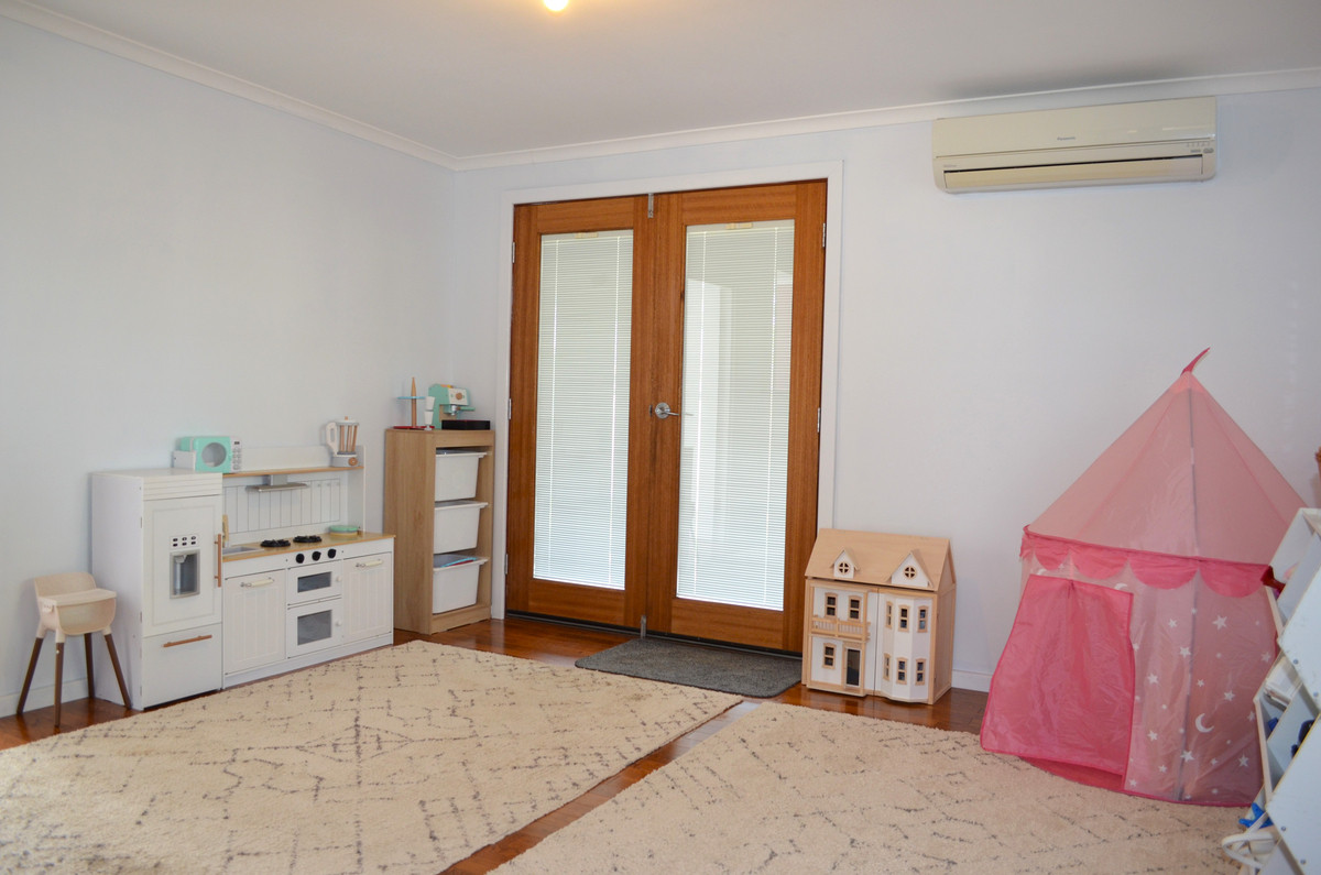 Key Features • Open Plan Layout: Enjoy a seamless flow between the kitchen, living, and dining areas, perfect for modern family life and entertaining. • Air Conditioning: Stay comfortable year-round with three air conditioning units strategically placed throughout the home. • Wood Fireplace: Cozy up during the cooler months with a charming wood fireplace, adding warmth and character to your living space. • Four Generous Bedrooms: Plenty of space for the whole family or visiting guests. • Walk-In Robes: Two of the bedrooms feature spacious walk-in robes, providing ample storage. • A versatile bonus space perfect for a kids' play area, giving your children a dedicated spot to learn, play, and grow.